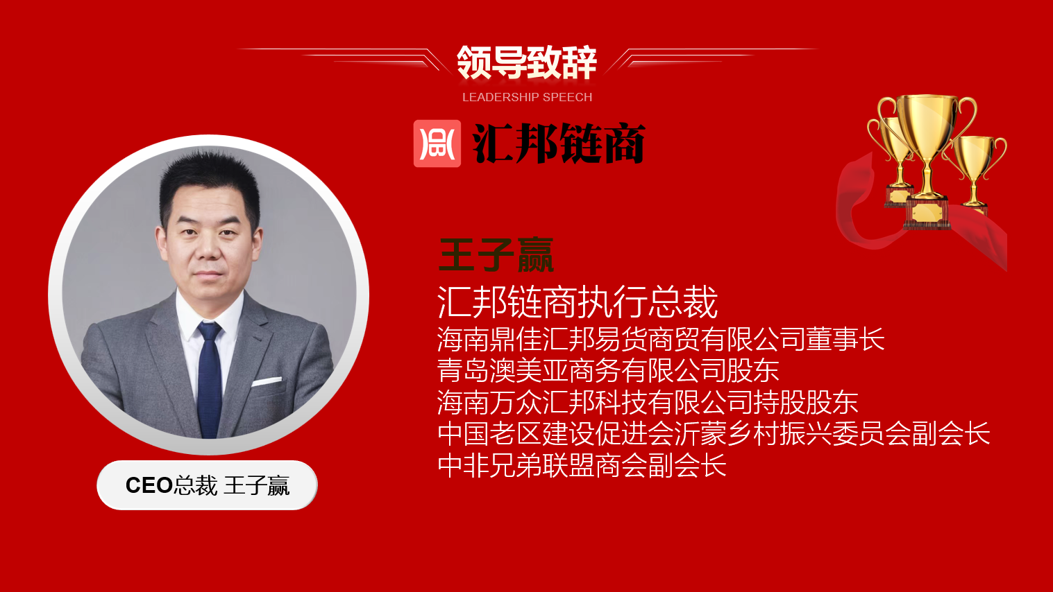 汇邦链商执行总裁致辞