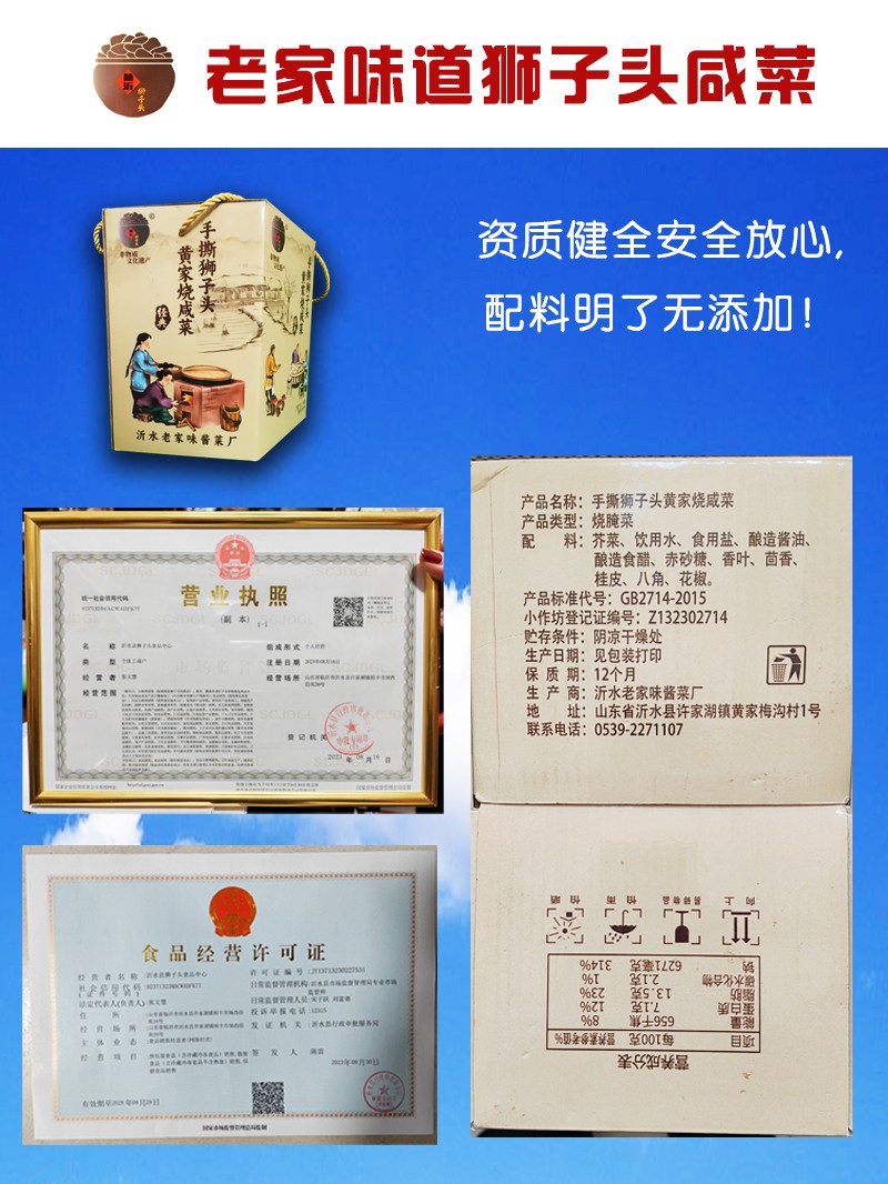 老家味古法秘制手撕狮子头烧咸菜2.5斤礼盒沂蒙特产非物质文化遗产。